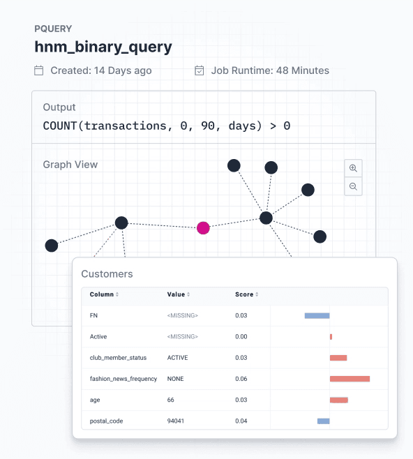 - Evaluate & Run: Instantly evaluate model quality, understand key contributors, and deploy predictions or embeddings at scale.