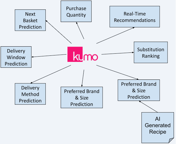- A Predictive Engine (KumoRFM): KumoRFM is used to power every aspect of online grocery shopping.