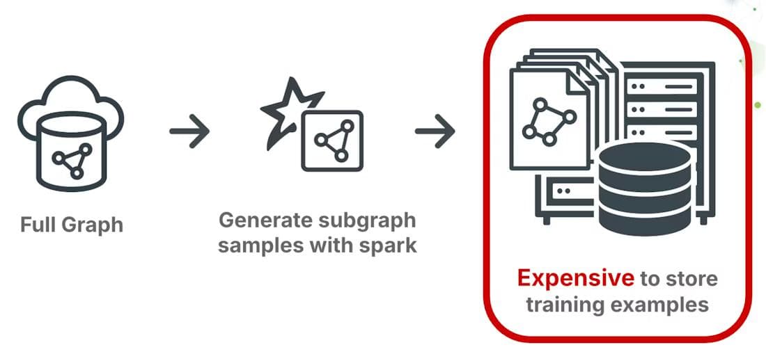Caption: Materializing neighborhoods with Spark leads to exponential growth in storage, slow iteration, and stale training sets.
