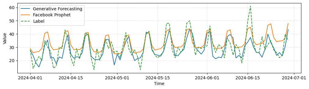Time series forecasting is a cornerstone in modern business analytics, whether it is concerned with anticipating market trends, user behavior, optimizing resource allocation, or planning for future growth. As such, a wide range of different approaches have been introduced and investigated for forecasting, lately data-driven approaches using machine learning and generative models.